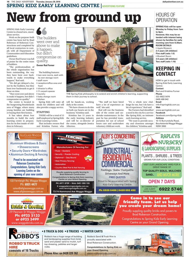 Advertising feature in Wagga Wagga’s Daily Advertiser